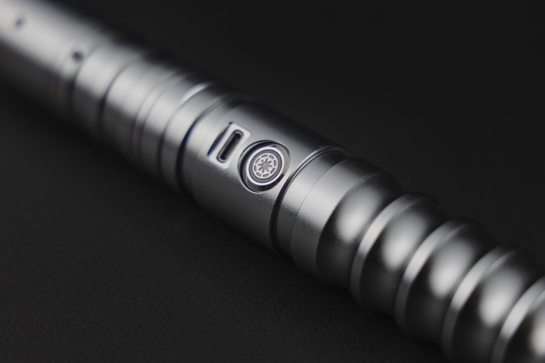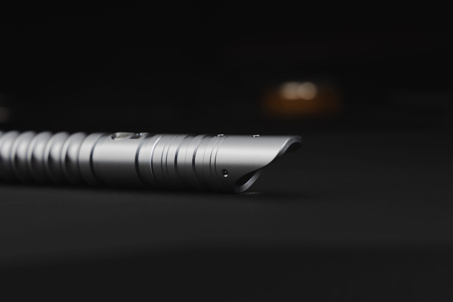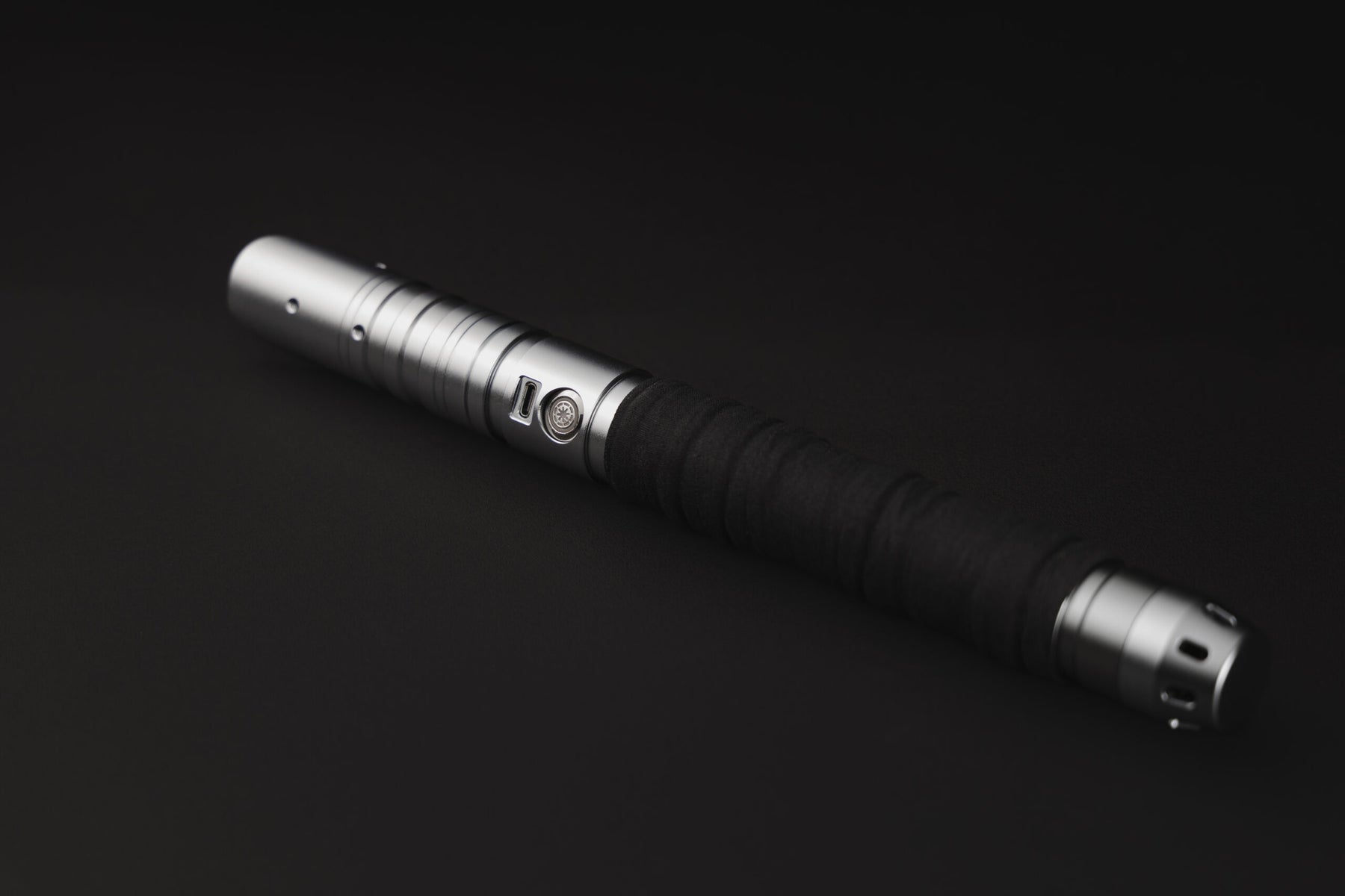 La empuñadura está fabricada en metal de alta calidad, duradero y resistente a los rigores del combate. El color gris o negro le da un aspecto sobrio y neutral, que no solo es estéticamente agradable, sino que también permite que el sable sea fácilmente asociado tanto con los Jedi como con los Sith.