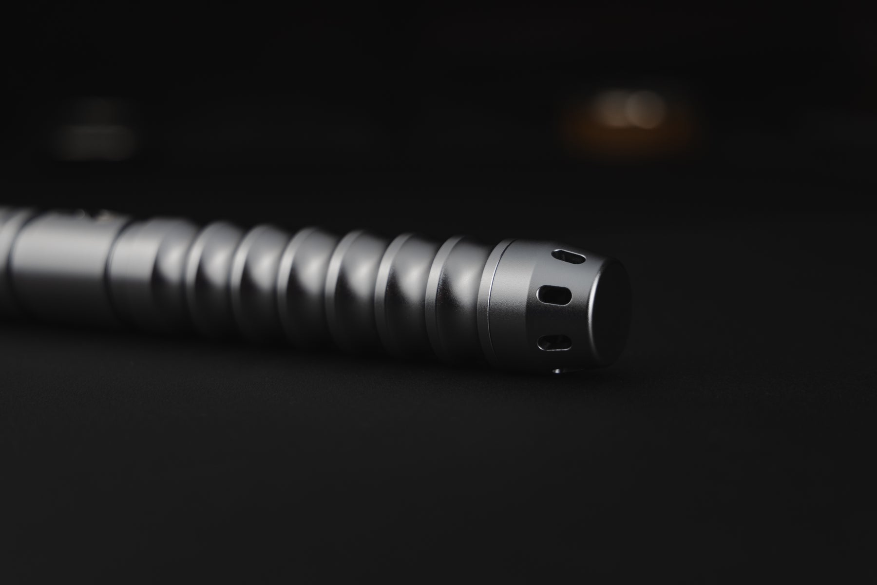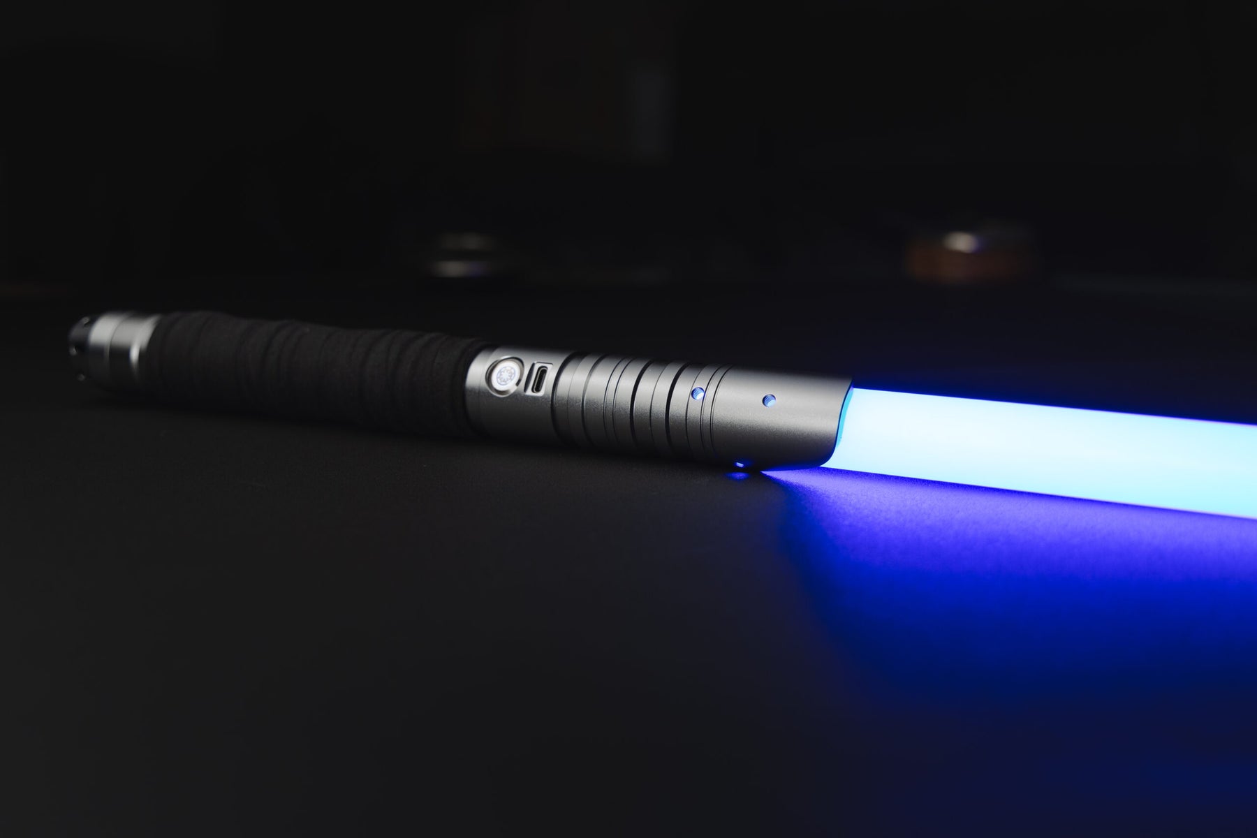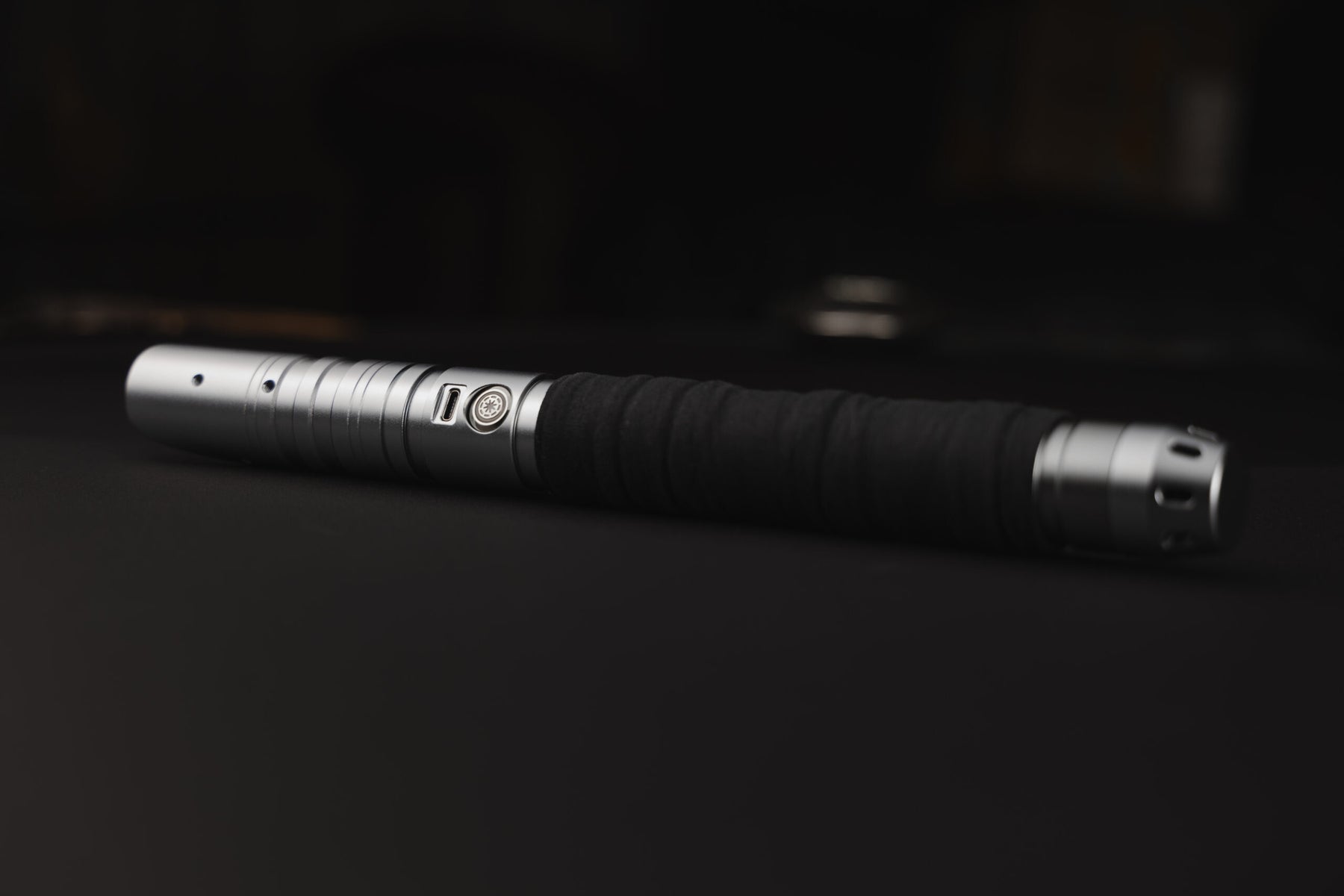 La empuñadura está fabricada en metal de alta calidad, duradero y resistente a los rigores del combate. El color gris o negro le da un aspecto sobrio y neutral, que no solo es estéticamente agradable, sino que también permite que el sable sea fácilmente asociado tanto con los Jedi como con los Sith.