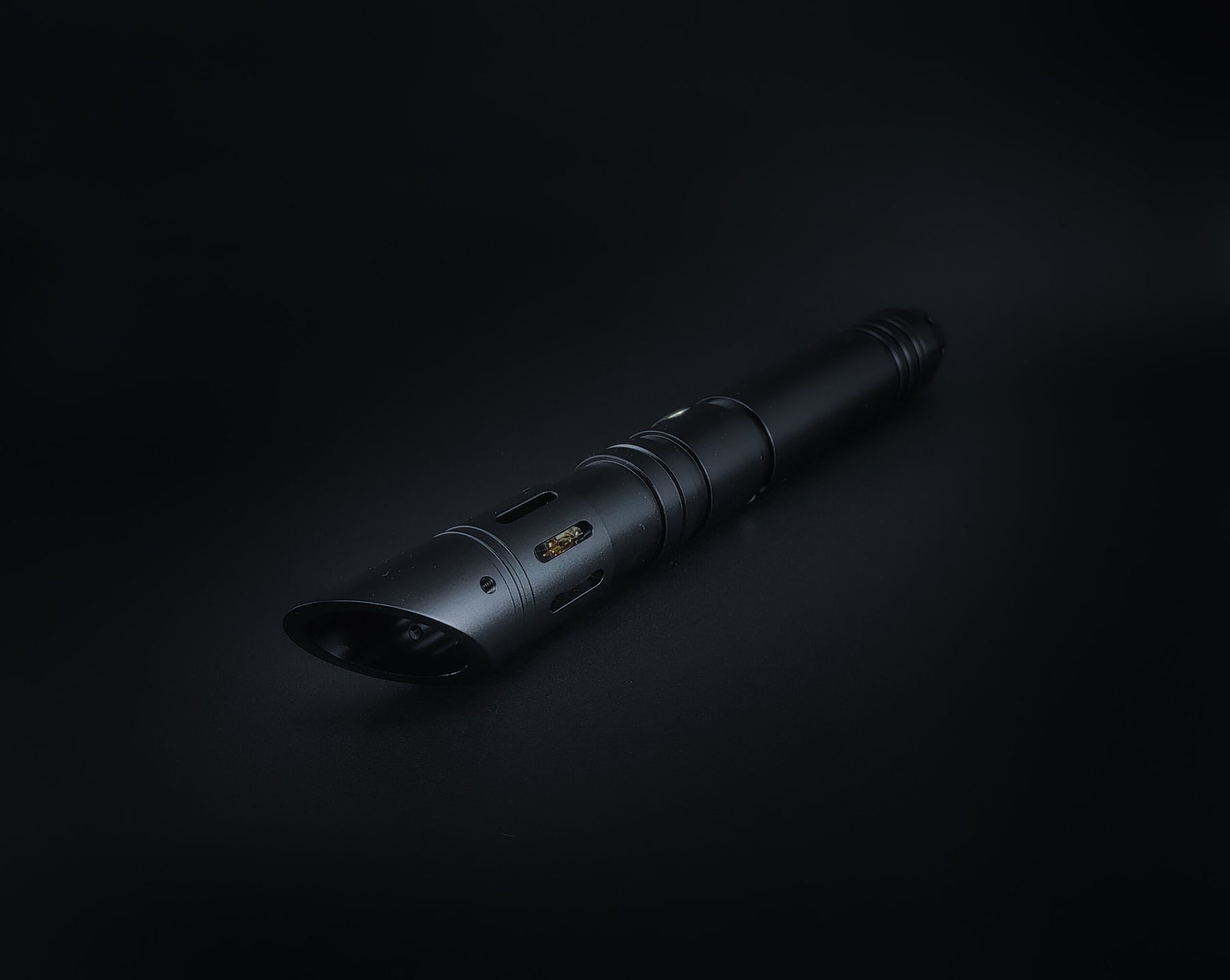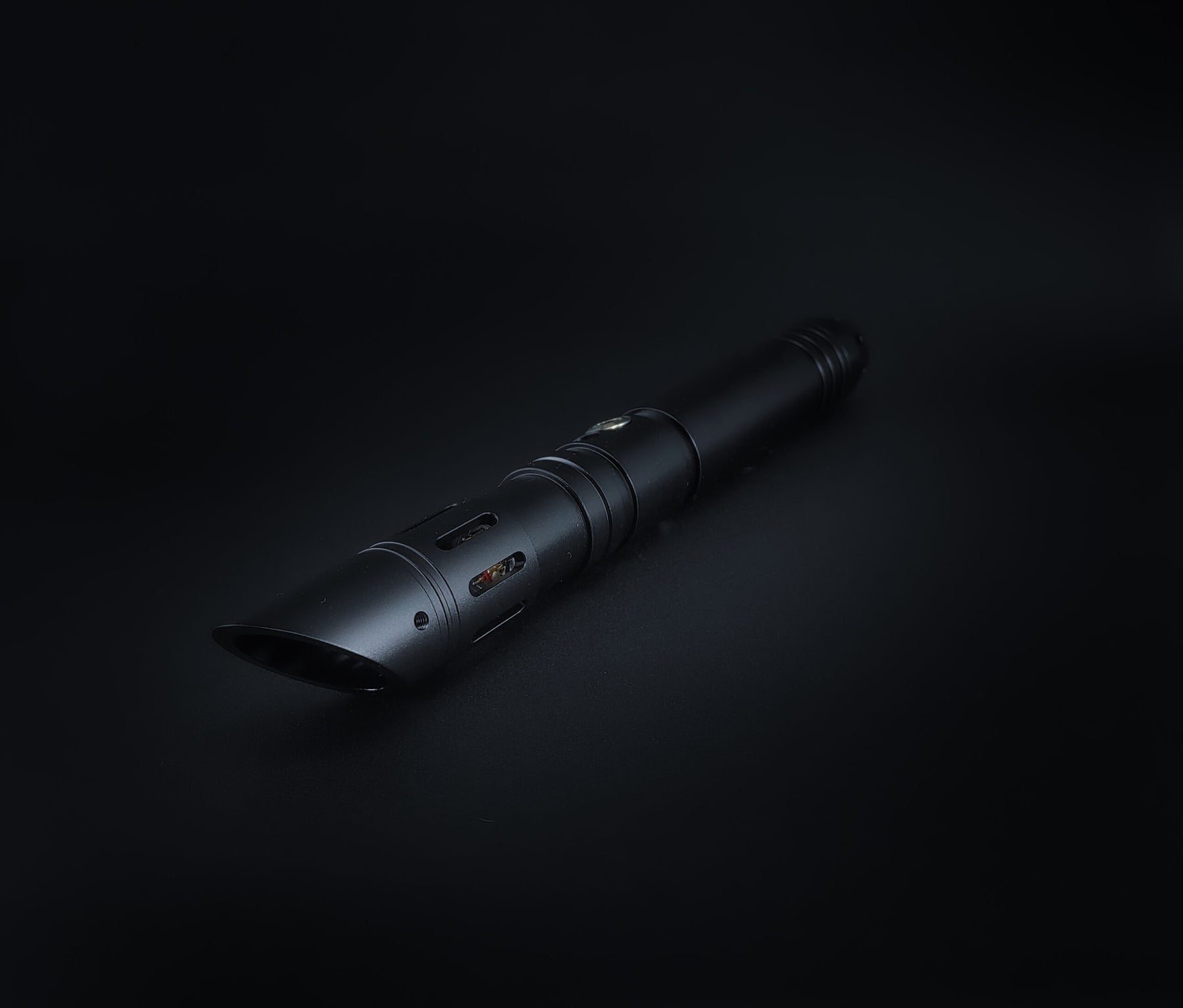 Brista presenta un cuerpo anodizado en negro o gris, sus ventanas en el emisor dejan pasar la luz del sable y hacen que luzca increíble cuando está encendido.