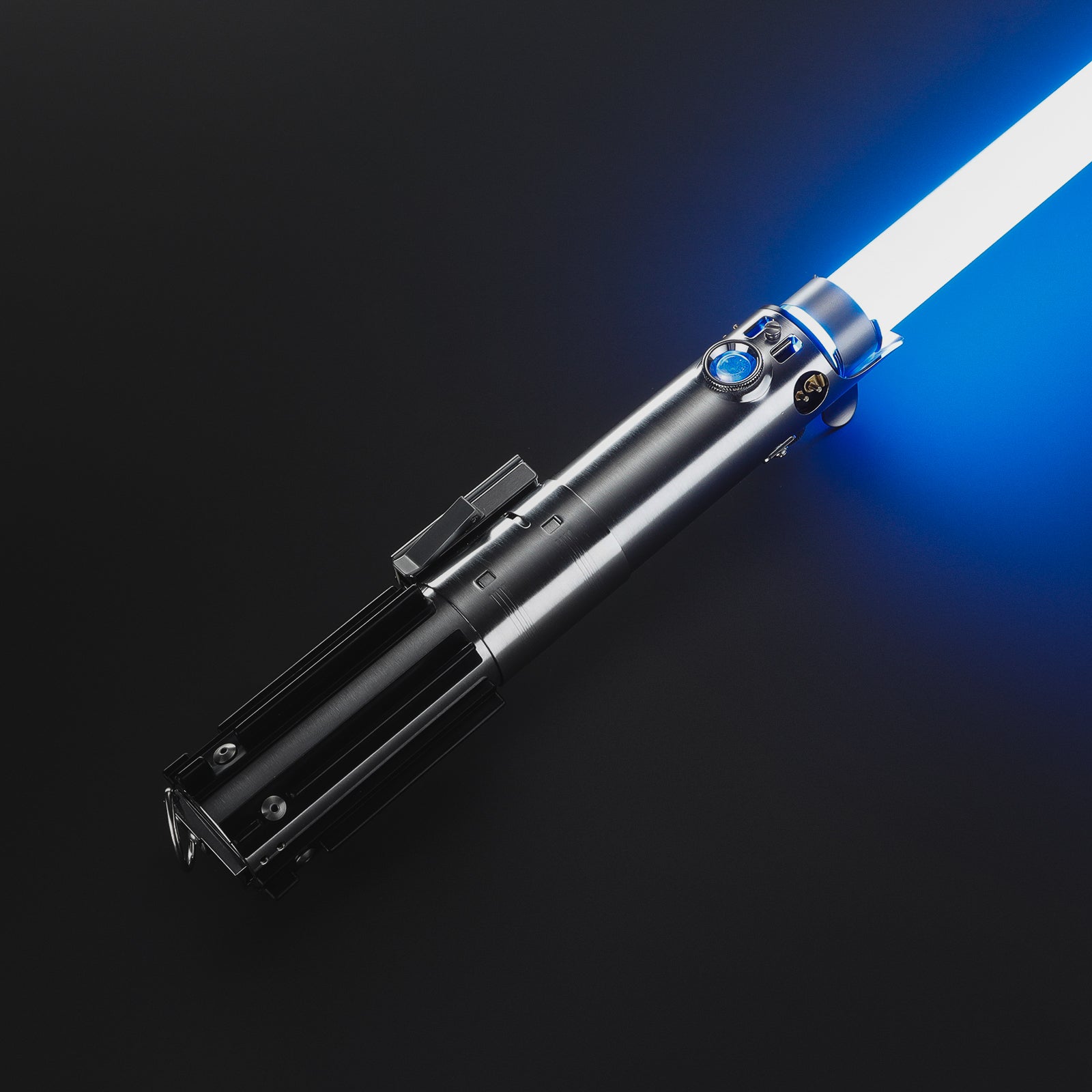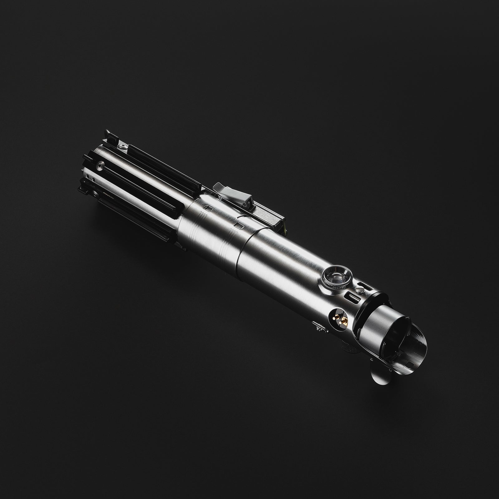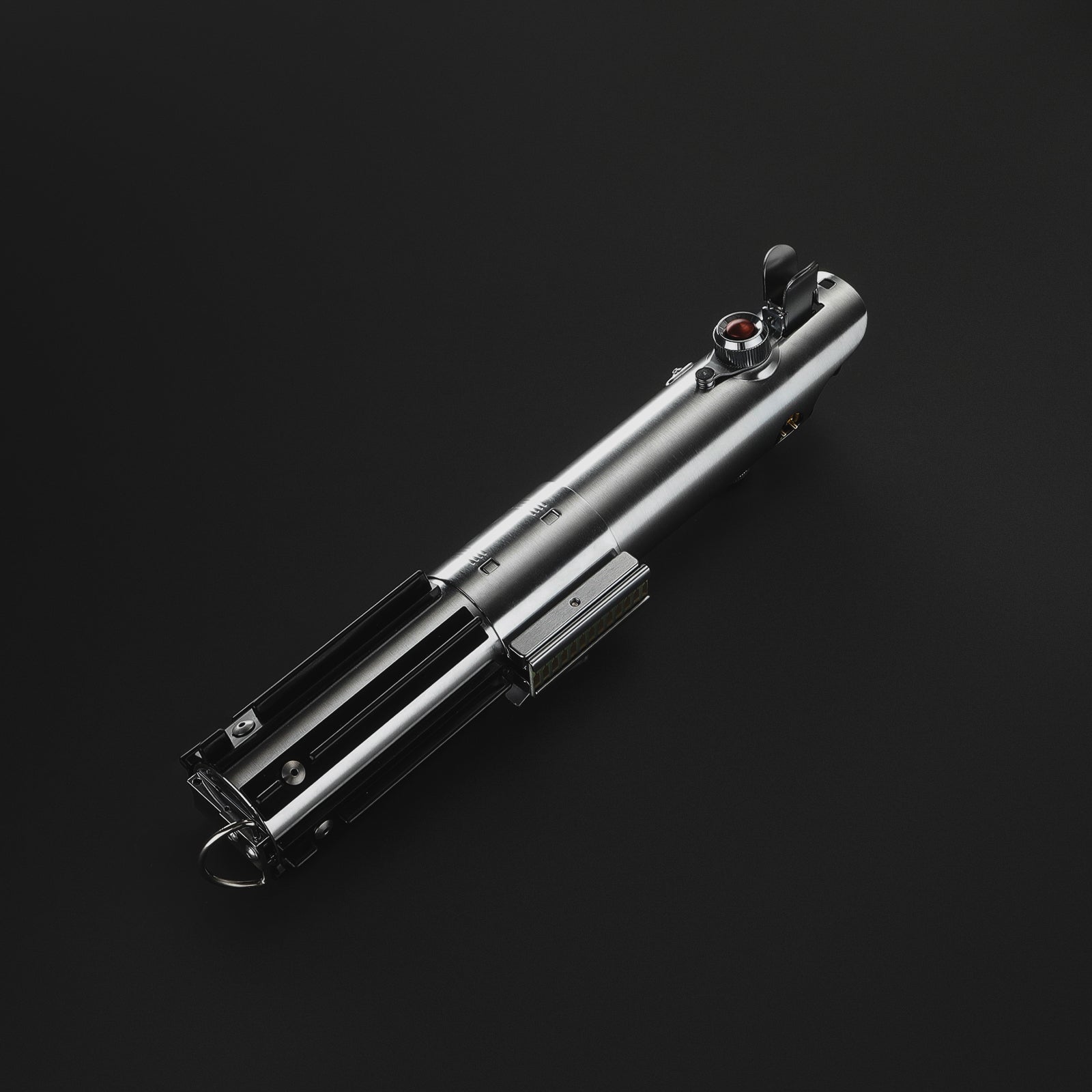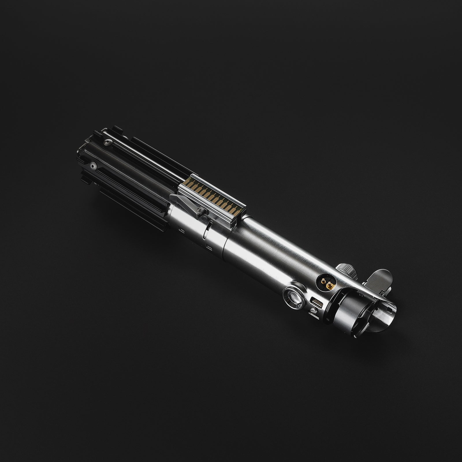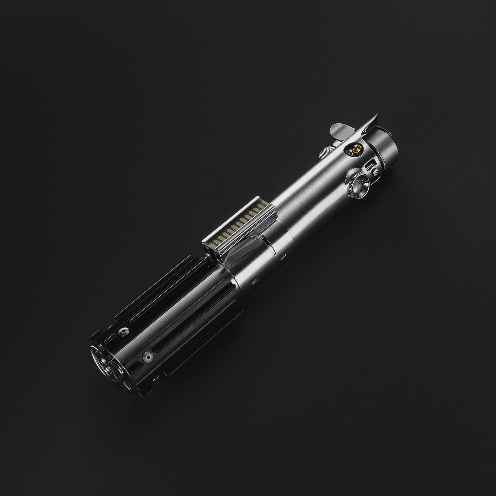 Nuestro Graflex fue cuidadosamente diseñado para que los detalles asombren a nuestros mas exigentes coleccionistas. Cuenta con un acabado cepillado con empuñaduras en T de polímero negro. Cuenta con una ventana principal cerca del emisor del sable que se ilumina cuando se enciende. El Graflex también cuenta con una función de doble revelación. La parte inferior del cuerpo y el pomo se desenroscan para revelar un chasis electrónico exquisitamente detallado. Se accede a la batería a través del chasis inferior y queda completamente oculto cuando se ensambla el sable.